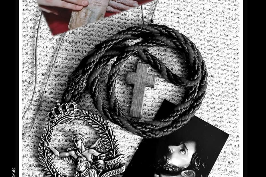 Completan el cartel: La medalla oficial de la hermandad, una cruz en madera adquirida en el Monasterio de Sobrado dos Monxes (La Coruña), durante el segundo Camino de Santiago que organizó nuestras hermandad y que representa la labor de peregrinaje que cada año nuestra hermandad realiza; La imagen de nuestro titular a través de una fotografía realizada por nuestro hermano D. Álvaro Monsalve, y por último la dedicatoria, que no necesita mayor explicación, todos sabemos el simbolismo de la misma.