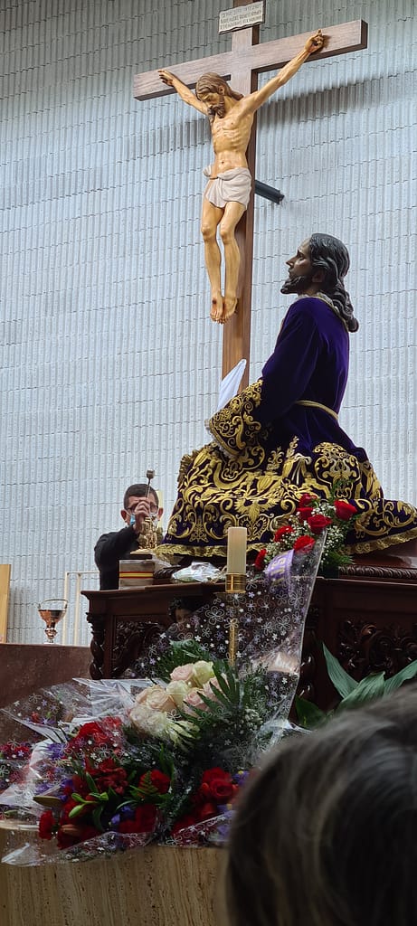 Al finalizar el momento de oración, al cual desde las 11.00 h, nuestro Consiliario D. Francisco Guerrero González, nos invitaba a realizar, en sustitución a esa Estación de Penitencia, que a causa de la pandemia no se ha podido efectuar, se llevaba a cabo el acto de bendición del nuevo «martillo», que había sido depositado con anterioridad a los pies del Señor, sobre un soporte construido para la ocasión, por nuestro mayordomo D. Ramón Delgado González.