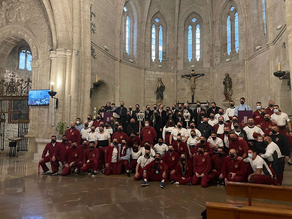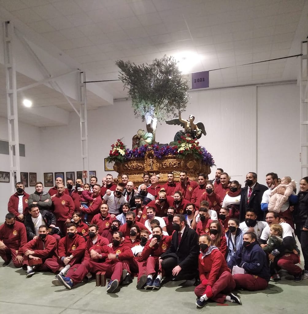La Cuadrilla de Costaleros de la Real y Muy Ilustre Hermandad de la Oración en el Huerto de los Olivos a la A.M. Santo Tomás de Villanueva por habernos acompañado en el día del 75 Aniversario de nuestro Misterio y durante las últimas décadas. ¡Sois nuestra novena trabajadera, sin vosotros no sería lo mismo»