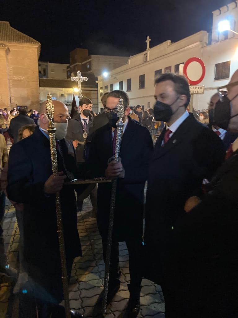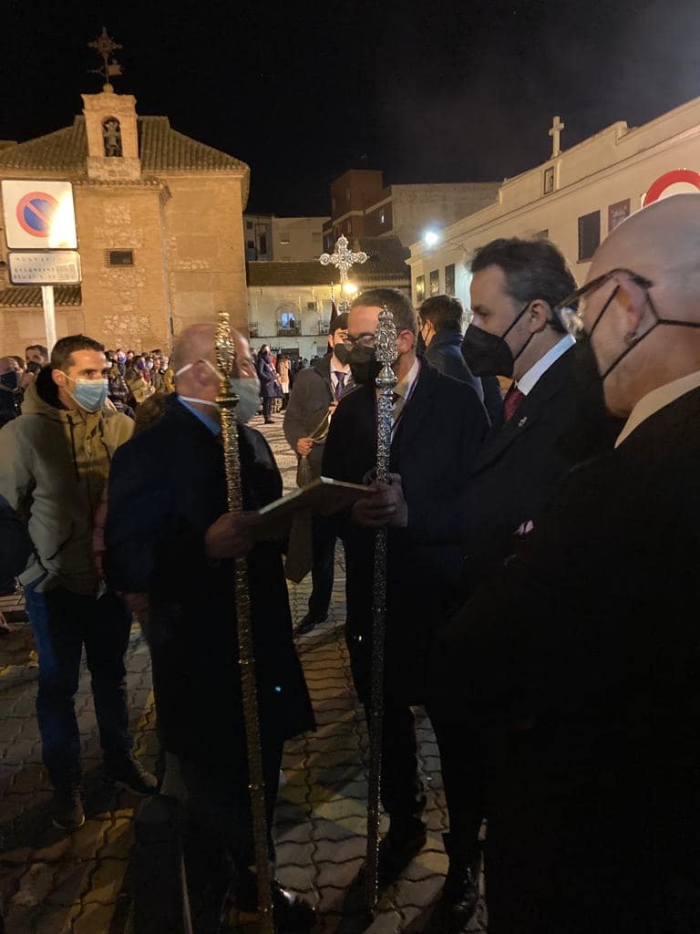 Tras interpretar la marcha Mi Cristo de Bronce en el callejón de acceso al guardapasos en memoria de D. Vicente García-Minguillán Lara, tras un notorio y merecido reconocimiento por parte la hermandad por sus años al frente de la hermandad, y tras las palabras dedicadas por nuestra Alcaldesa Dña. Eva María Masías Avis a la Cuadrilla de Costaleros en señal de agradecimiento por el meritorio esfuerzo realizado, sonó la marcha Mi Ángel de la Madrugá dedicada a todas aquellos hermanos/as fallecidos durante estos dos años sin procesiones en las calles. A su término, la agrupación sTv «rompía filas», y una representación de la Junta Directiva de la hermandad fue requerida para recoger de manos de nuestro Hermano Mayor el último de los reconocimientos entregados aquel día.