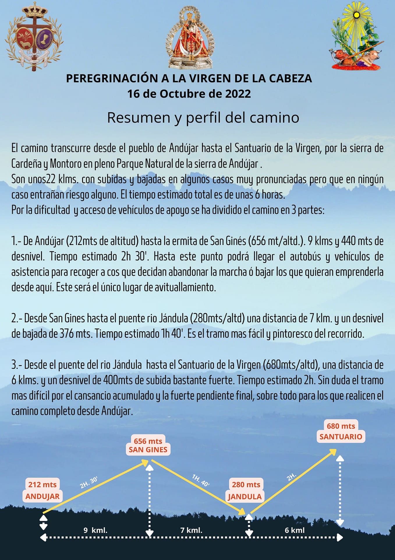 Para aquellos que os animéis a peregrinar con nosotros al Santuario de la Virgen de la Cabeza el próximo domingo 16 de octubre, aquí os dejamos tanto el Perfil de la Peregrinación, como algunos Consejos Útiles que os pueden venir bien para acometer el recorrido.