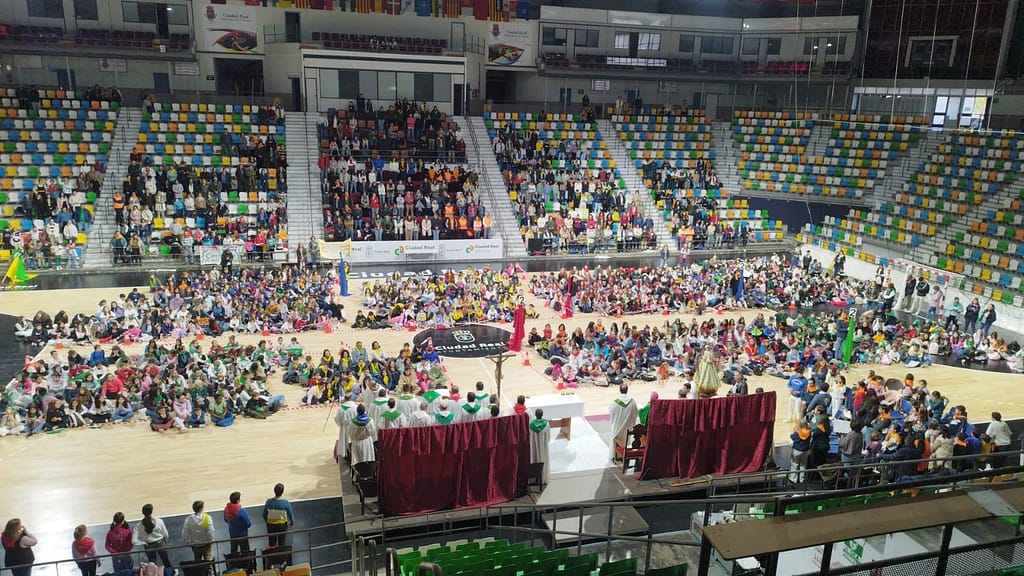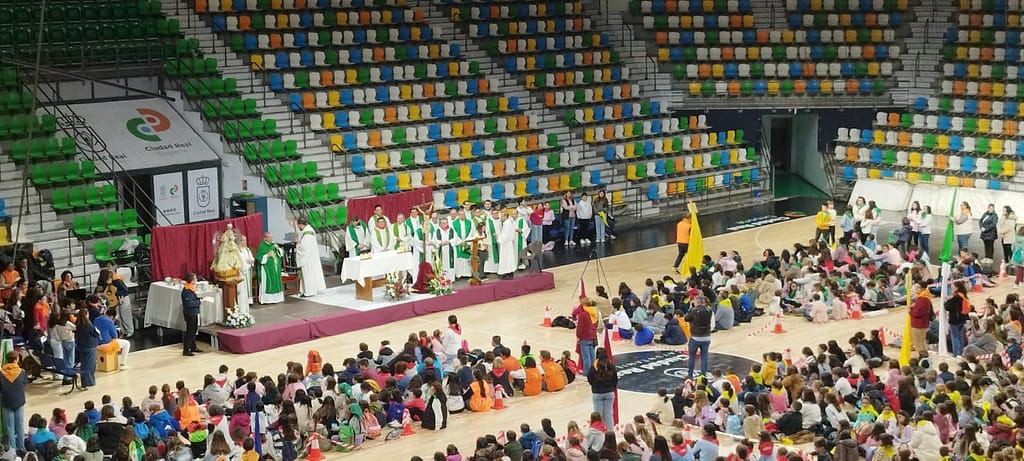 La mañana comenzó con la llegada de más de 1.100 niños al Quijote Arena, para desde allí trasladarse hacia la Plaza Mayor, donde se hizo una recepción y distribución de niños, por parroquias, a los distintos puntos establecidos con banderas. Tras los distintos talleres de oración, gymkana, testimonios, una coreografía de un misionero y el decálogo del niño misionero, se hizo una parada para el bocadillo en el Quijote Arena, con sobremesa de convivencia, para posteriormente clausurar este encuentro con una eucaristía presida por Don Gerardo Melgar.