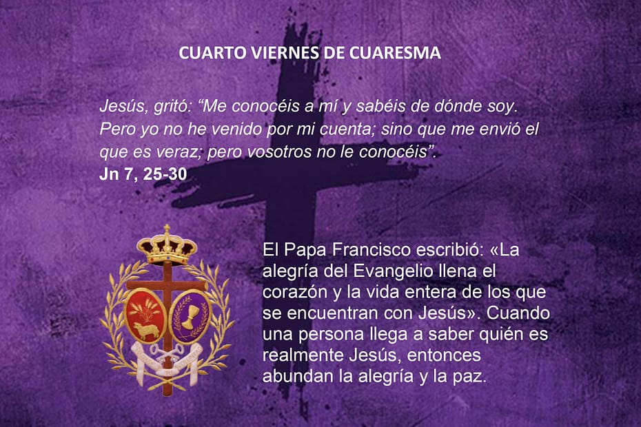 En este cuarto viernes de Cuaresma, vemos cómo Jesús no actúa por su cuenta, sino enviado por Dios. Cuando una persona descubre quién es verdaderamente Jesús, como dice el Papa Francisco, su vida se llena de alegría y paz.
