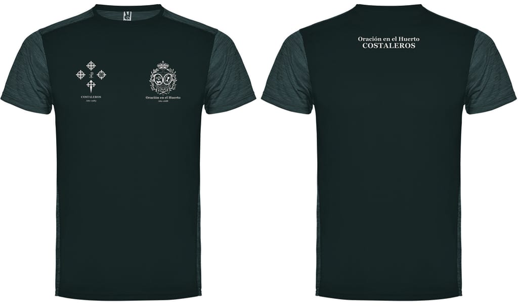 - Polo azul marino, el borde del cuello luce los colores de la bandera de España. En la manga bordadas las cuatro órdenes militares, en el pecho bordado el emblema de la hermandad, en la parte superior trasera la bandera de España bordada, bajo la cual en color plata se bordan las frases «Getsemaní» en grande y bajo ella «Costaleros» en letra algo más pequeña.