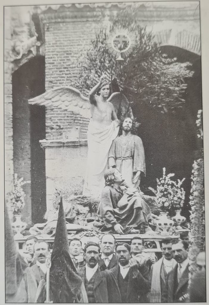 De Interés: el misterio, tenía una disposición diferente al actual, el Ángel Confortador y el Cristo iban en la delantera del paso, y las imágenes de los apóstoles, eran de vestir.
